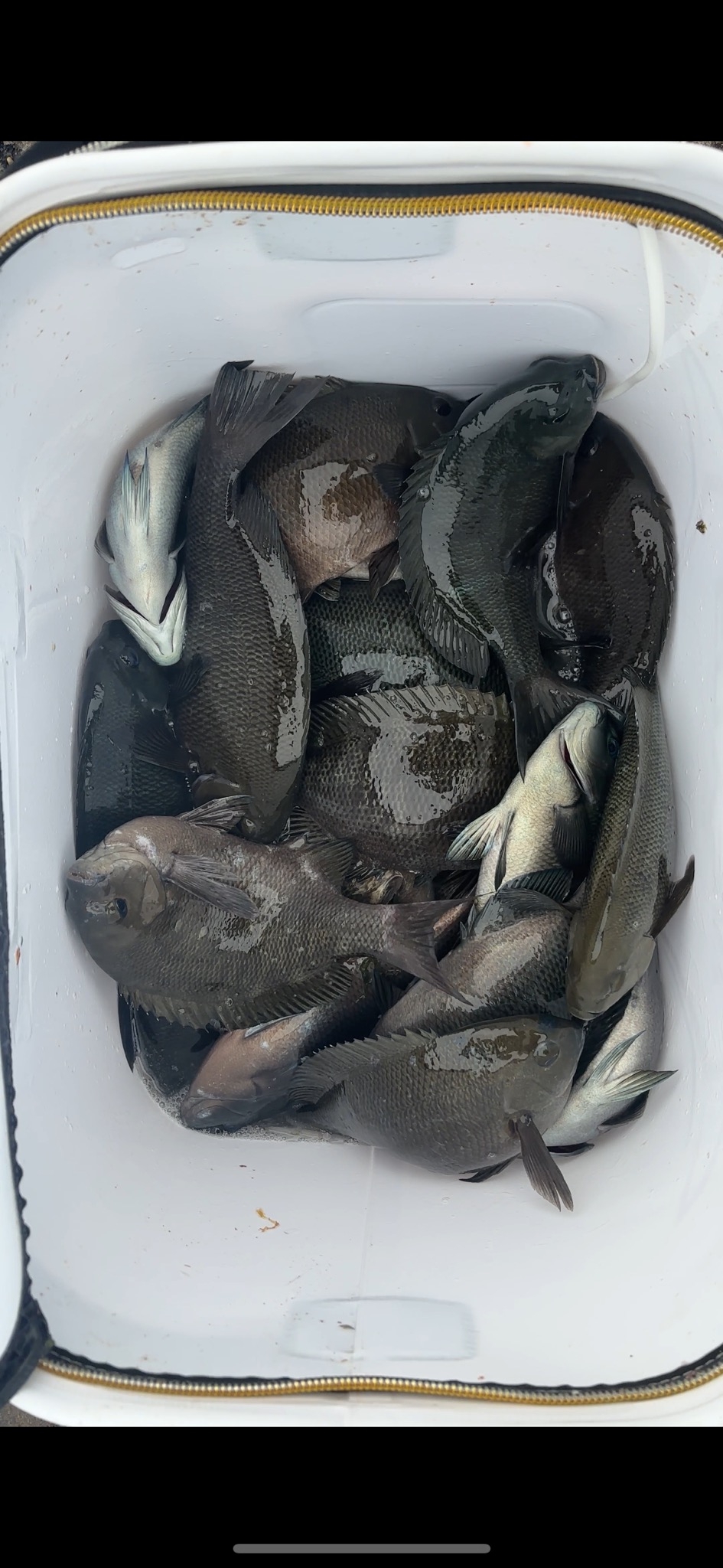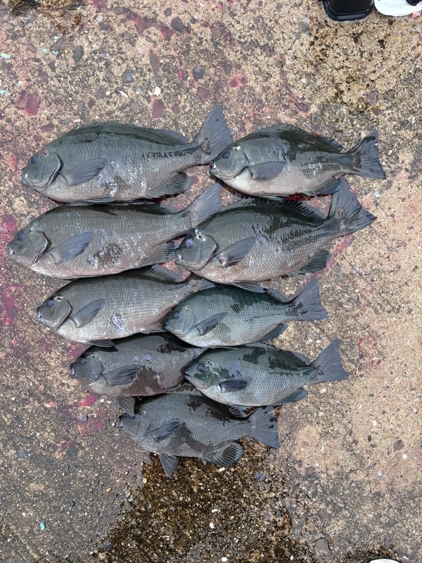 途中からパターン掴み30cm~37㎝までのクロが40匹弱釣れ、地磯の帰りも考え15枚だけキープして納竿しました。