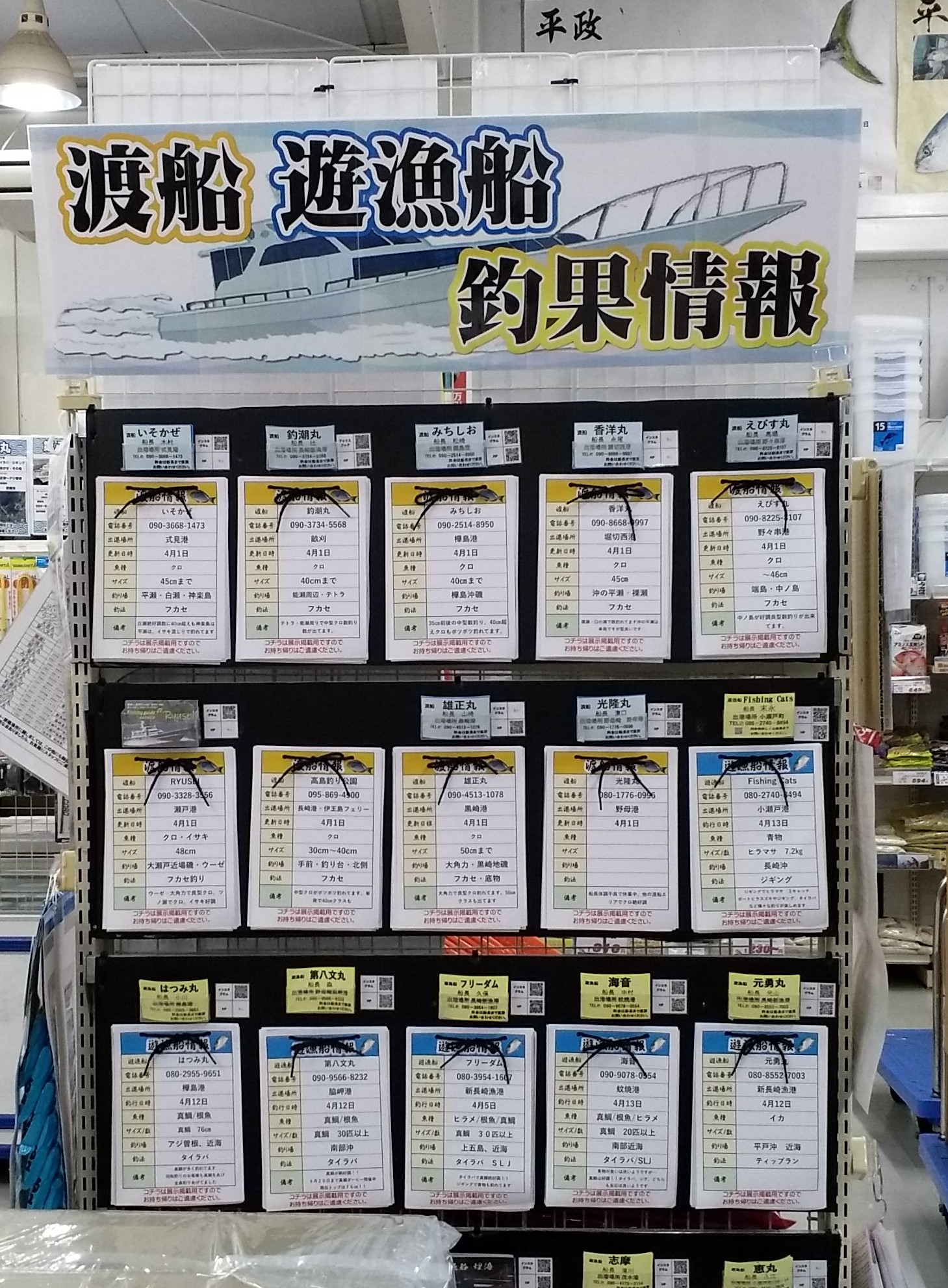 当店にお越しの際は是非「渡船、遊漁船の釣果情報コーナー」を参照ください。