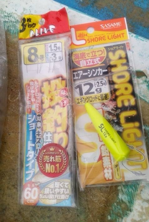 そこで次のターゲットのキス釣り。ここは浅い場所にアンカーリングしてチョイ投げで狙う形。タックルはチニングのままで