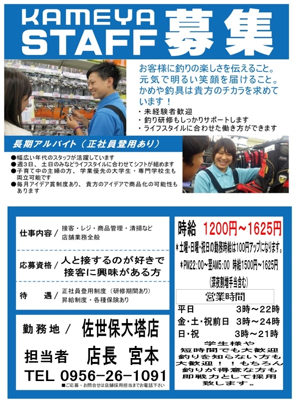 どうも、かめや釣具佐世保大塔店の宮本ですm(__)m