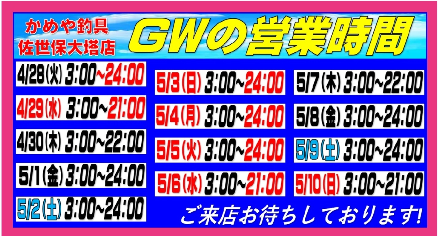 それでは、かめや釣具佐世保大塔店。