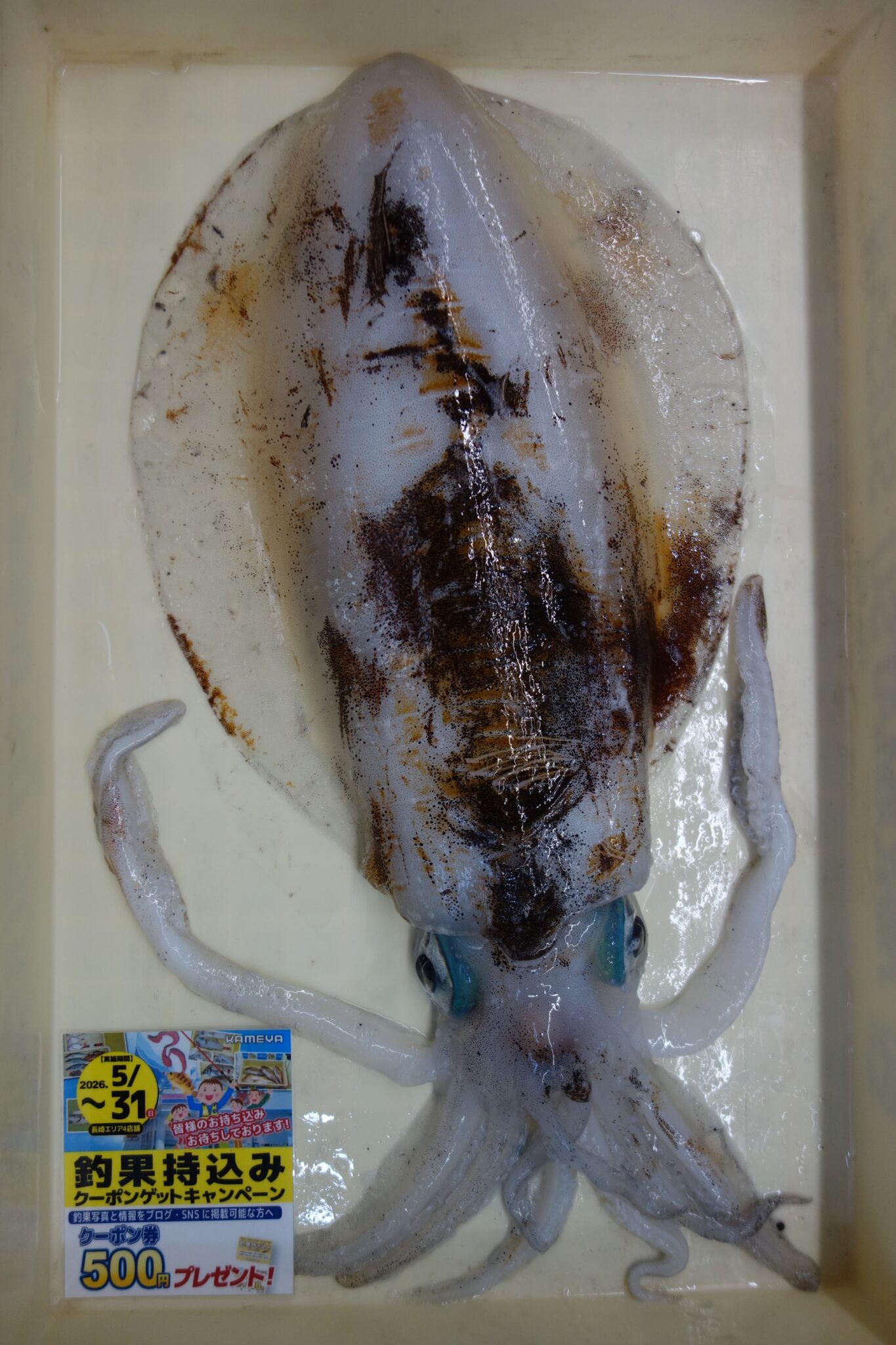 どうも、かめや長崎時津店井下です!本日、お客様よりアオリイカとキスのお持ち込みがありました。畝刈方面にて、エギングで1935gのアオリイカを釣られたそうです!エギはエギ王kを使用されたそうです!!潮井崎公園にて、餌は砂虫を使用され午前中に二時間で13匹、最大19cmのキスを釣られたそうです!!段々と気温も上がりキスもアオリイカも調子を上げてきていますね!!