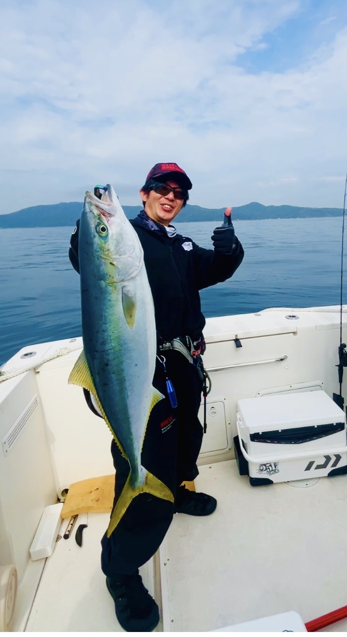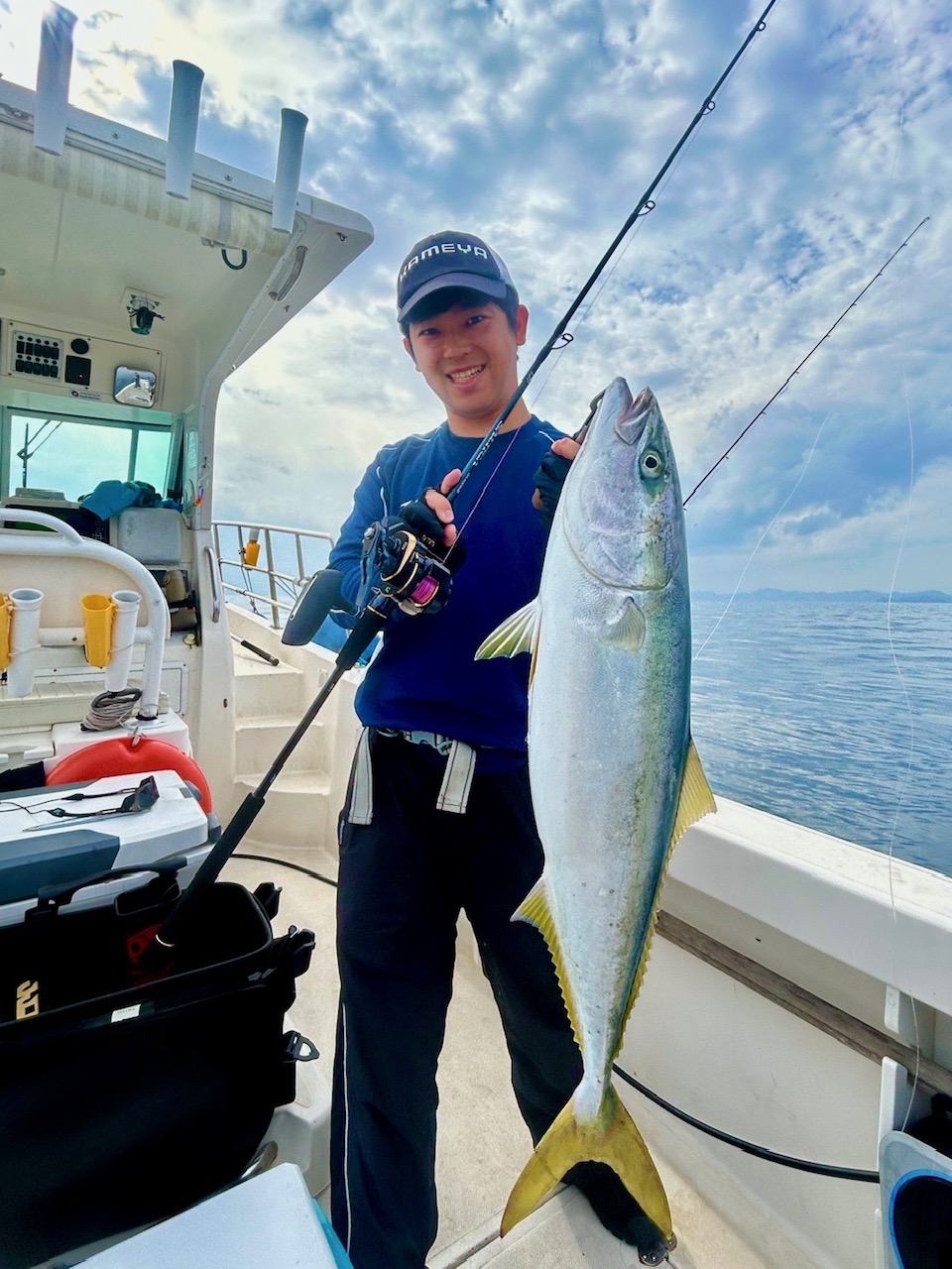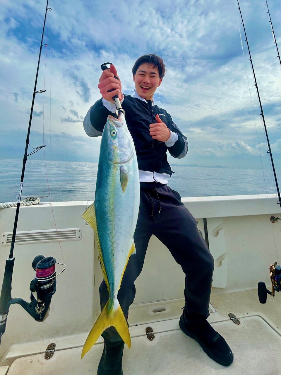 イシカワはこの日最大の74cmのハマチサイズをキャッチ