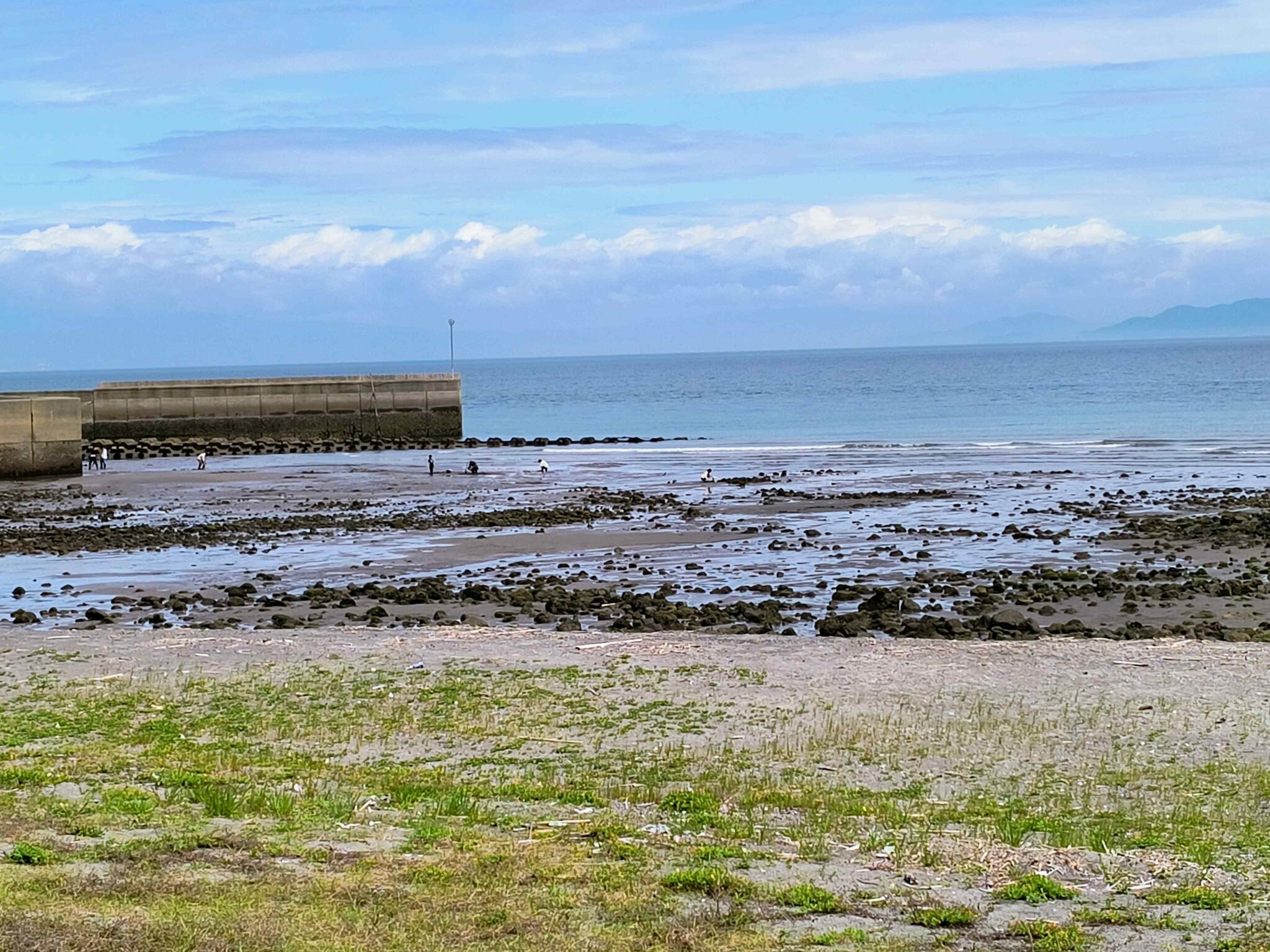 見覚えのある貝が砂から2~3㎝頭をのぞかせている…(;’∀’)うん、これは間違いなくタイラギだな…よく見るとチラホラいる絶対漁業権あるだろ。よし!スルー