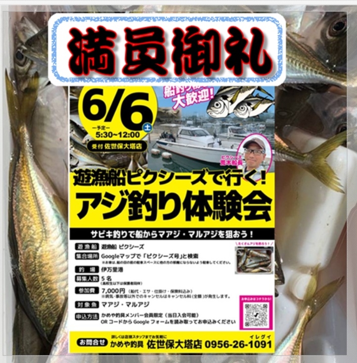 「遊漁船ピクシーズで行く!アジ釣り体験会」。