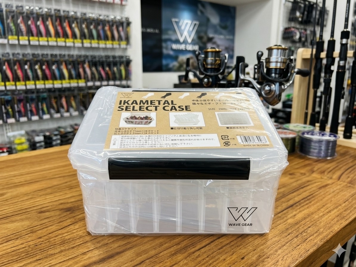 WAVEGEAARグッツIKAMETAL SELECT CASE🔥サイズ235×185×120(mm)仕切り仕切りの高さ71㎜×24ポケット仕切り仕切りの高さ57㎜×24ポケット様々なスッテ・エギを収納可能48個のポケットがあるためズボンより沢山入ること間違いない👏スケルトン使用なので外から中を確認することが可能です👀