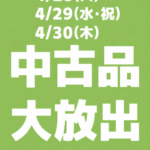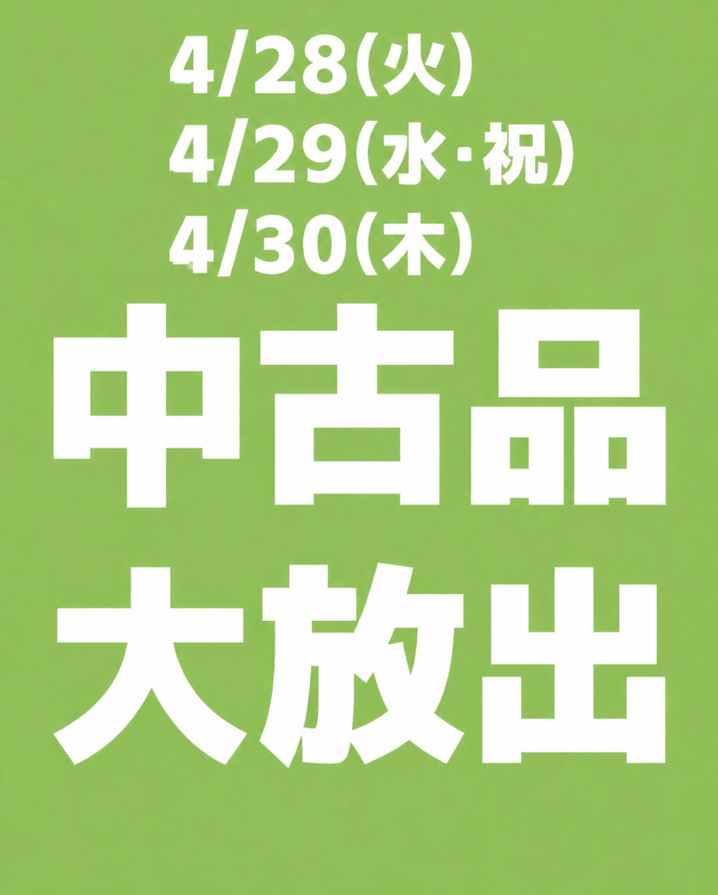 明日28日より30日まで3日間、中古品大放出を開催いたします。