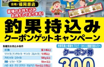 かめや釣具福岡原店 岩田です。現在釣果お持ち込みキャンペーン開催中です!!釣果をお持ち込み頂ければ300円分のクーポン券…