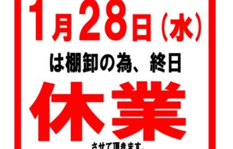 みなさんこんにちは戸町店の石田です。お知らせです。明日1月21日(水)ですが当店は棚卸の為終日、休業致します。大変ご不…