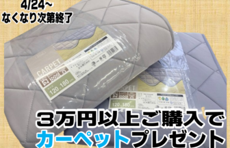 日頃のご愛顧に感謝いたしまして只今長崎時津店限定‼️3万円以上ご購入いただいたお客様にカーペットをプレゼントしております…
