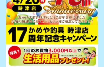 こんにちはかめや釣具長崎時津店さかいです今週末は時津店がアツイ!4/24~4/26の期間中、オープン17周年記…