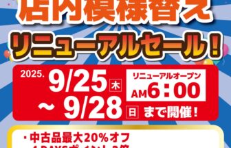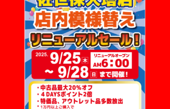 こんにちは 時津店です本日はかめや釣具佐世保大塔店で開催予定のリニューアルセールのご案内9月25日〜28日にかけて店内模様…