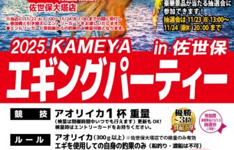 情報解禁🔥🔥🔥11月の3連休で「2025.KAMEYAエギングパーティーin佐世保」を開催しま~す!ちょー簡単に説明すると11月22日~24日…
