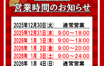 年末年始の営業時間のお知らせ~大分萩原店~