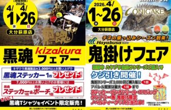 こんにちは、かめや釣具大分萩原店です(^^♪4月からのイベントを公開!4月1日(水)~4月26日(日)までの期間にてキザクラ 黒…