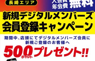 どうも、かめや長崎時津店井下です!只今、新規デジタルメンバーズ館員登録キャンペーンを開催しております!!期間中、店頭…