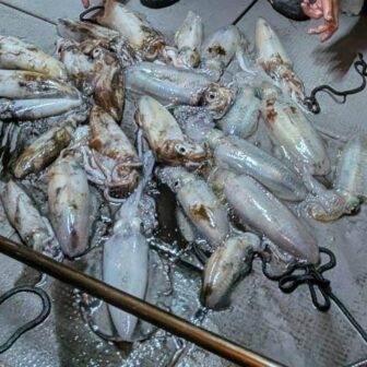 高島沖でのティップランエギングで700gまでのアオリイカが11杯釣れたそうです。ケイムラのエギに反応が良いとのこと。