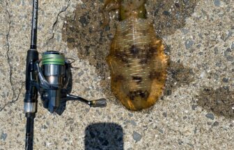 釣り方はアジングで時間帯は夜間との事です。アジングロッド6フィート前後に小型のスピニングリールでラインはフロロカーボンライン2lbを使用との事です。ジグヘッドは1g前後で2インチ前後のストレート系ワームを使用され、カラーはクリア系が有効の事で湾内での釣果だそうです。