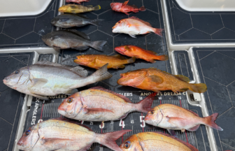 電気ウキ仕掛けで青虫(太)を使用しスズキの30㎝前後が7匹釣れております。橋脚や壁沿いを狙うと数が釣れるそうです。時折60㎝を超える鱸やチヌも釣れるそうです。