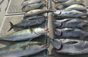 室見川河口でシーバスの60cm前後が2匹釣れたそうです。雨の影響で若干濁りが入りチャート系の色に反応が良かったそうです。
