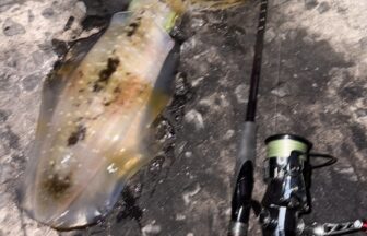 エギングでアオリイカが釣れております。浅場より深場でのアタリが多いそうです。ケイムラ・赤テープに反応が良いそうです。