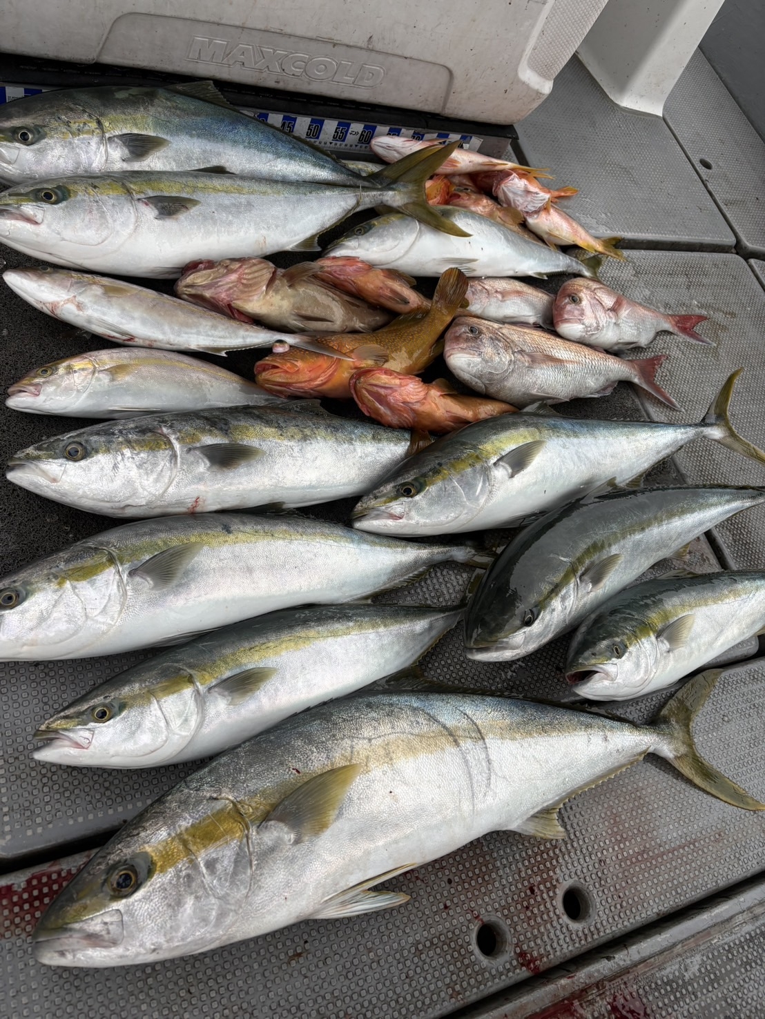 青物ではヤズ、ネリゴが中心でその他、ハガツオ、マダイ、ハタ類と色々な魚種が釣れています。