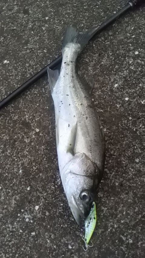 鉄板系のバイブで表層を引いて狙い、なんとかキャッチ。