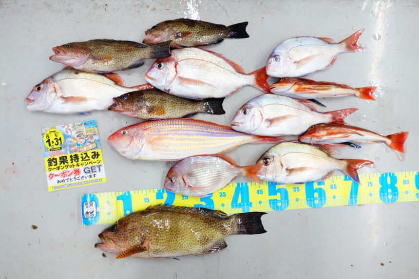オオモンハタ47㎝を筆頭に真鯛やホウボウ、イトヨリなどなど!!