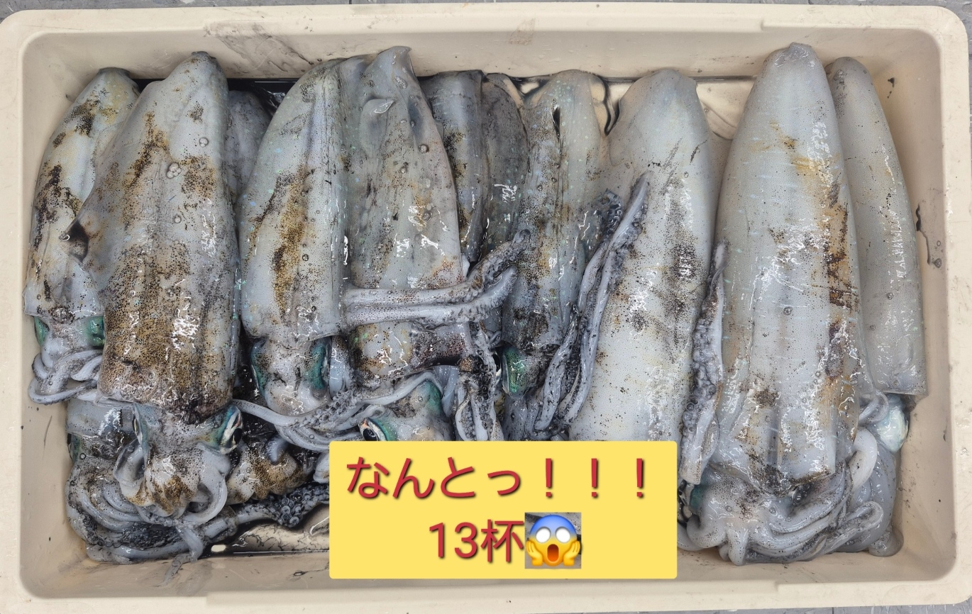 イカだらけ・・・・・( ̄д ̄) 真っ黒くろぐろのクーラーの中 秋風に吹かれまくった感じですね~\(^o^)/ うらやましい釣果です(*ノωノ) 飯盛沖で ティップランの釣果です!! 船中28杯っ!!