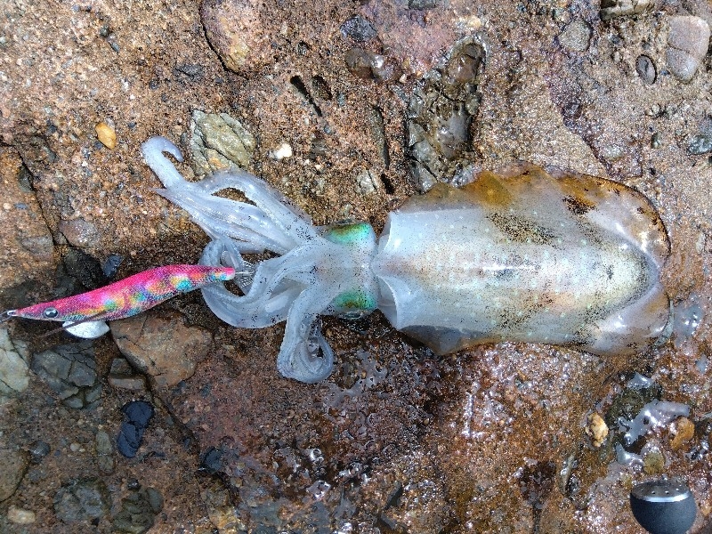 朝マズメの釣果で下地赤テープのエギに反応したそうです。