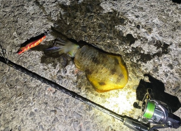 長崎南部のエギングにて1kgのアオリイカを頭に6杯釣れたそうです。