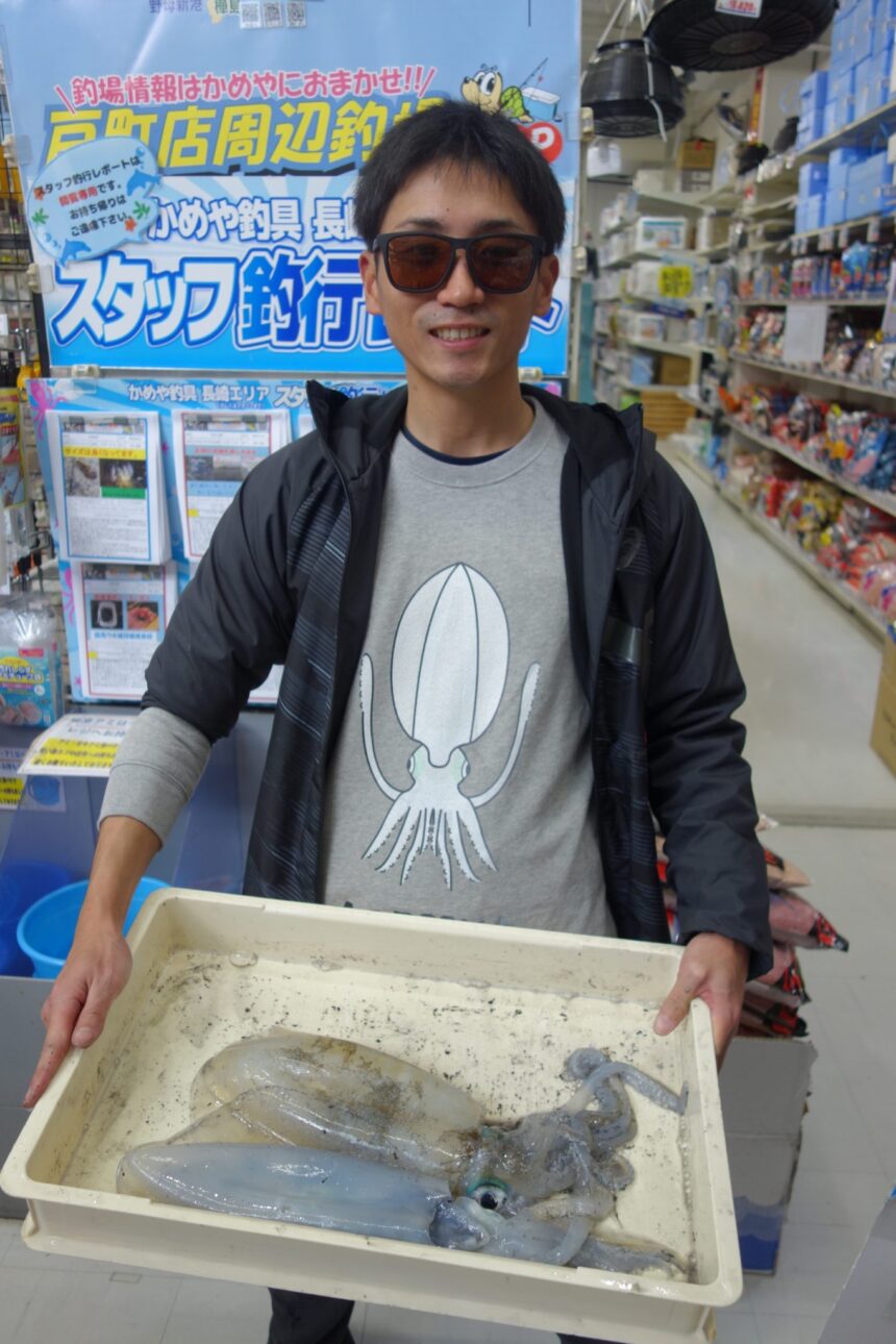 本日、お客様よりお持ち込みを頂きました! 970gを頭にアオリイカが二杯です🦑✨ 釣場は神の島で、エギングでの釣果だそうです