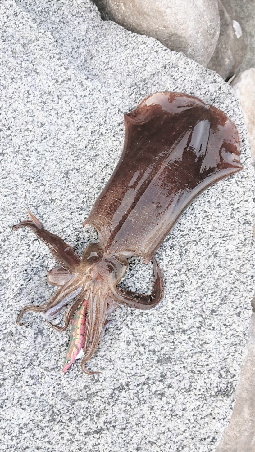 エギングでアオリイカが釣れております。出来るだけ遠投しボトム(底)付近を重点的に狙い釣られたそうです。