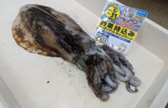 良型アオリイカ!お持込み頂きました~!2杯ともキロ超えです!さすが、凄腕アングラー!お見事👏