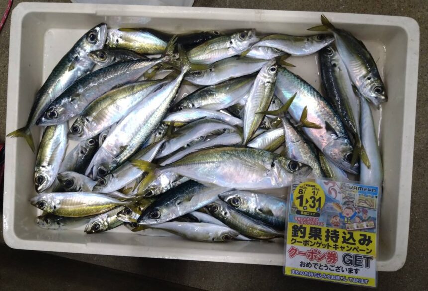 昼から夕マズメにかけてサビキで釣れたそうです。