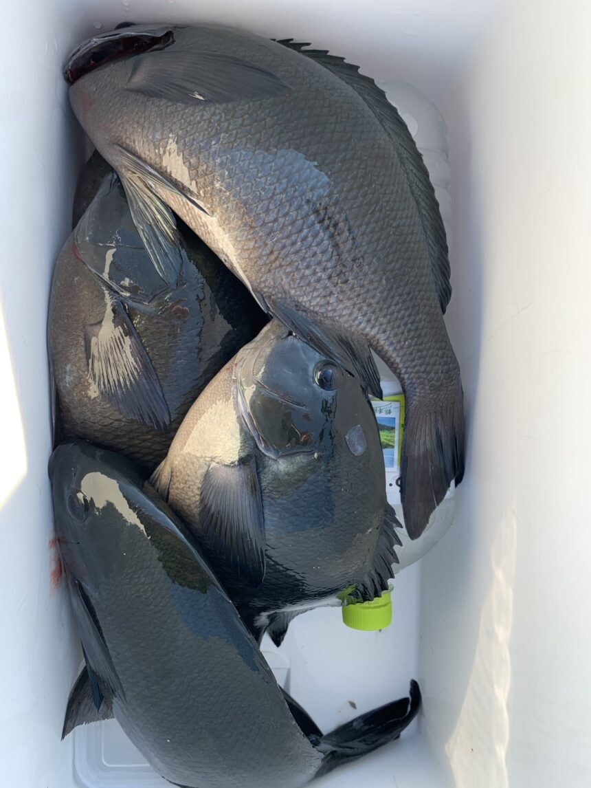 香焼沖磯裸瀬にて35㎝前後のクロの釣果です