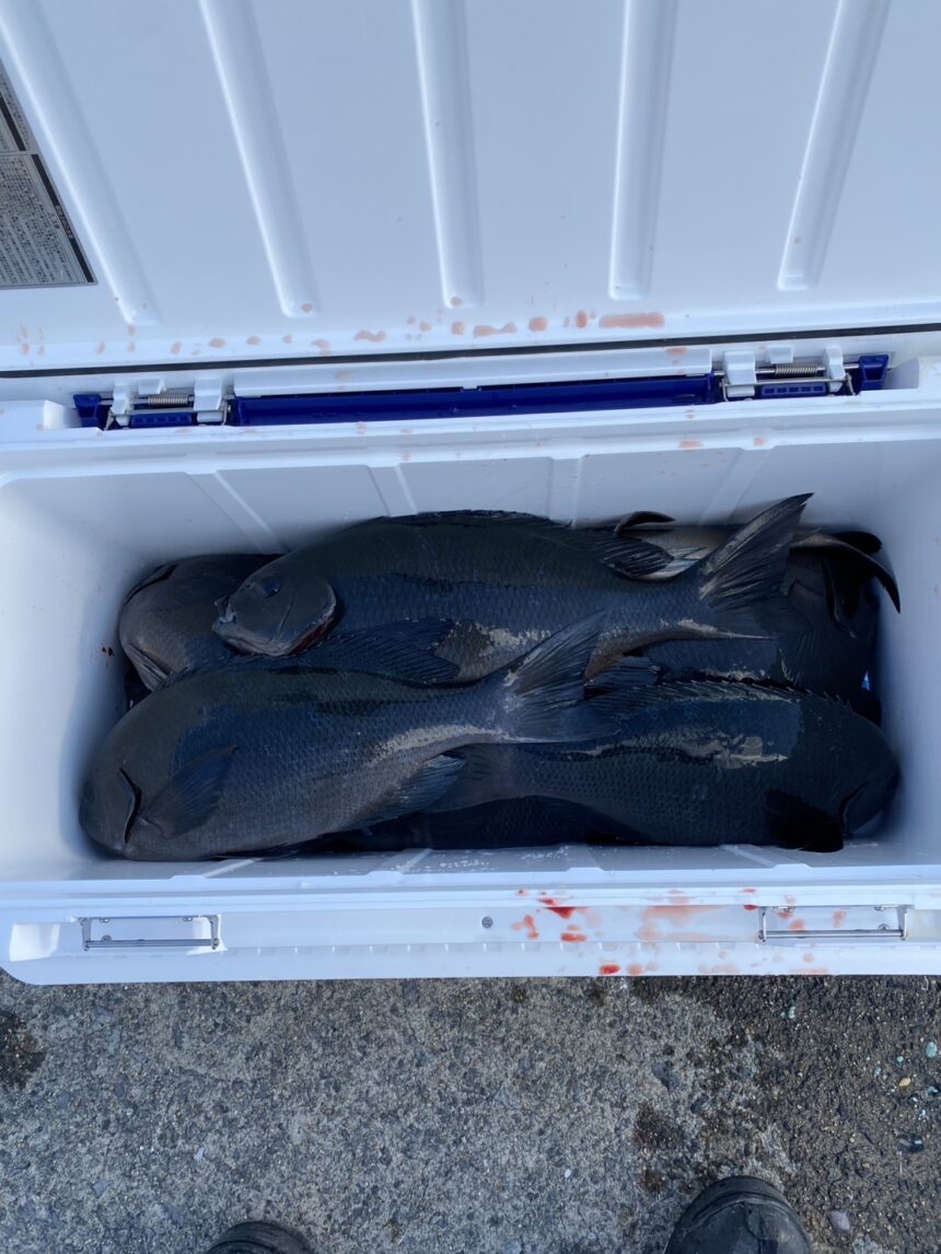 35㎝~42㎝程のクロが10匹程の釣果です