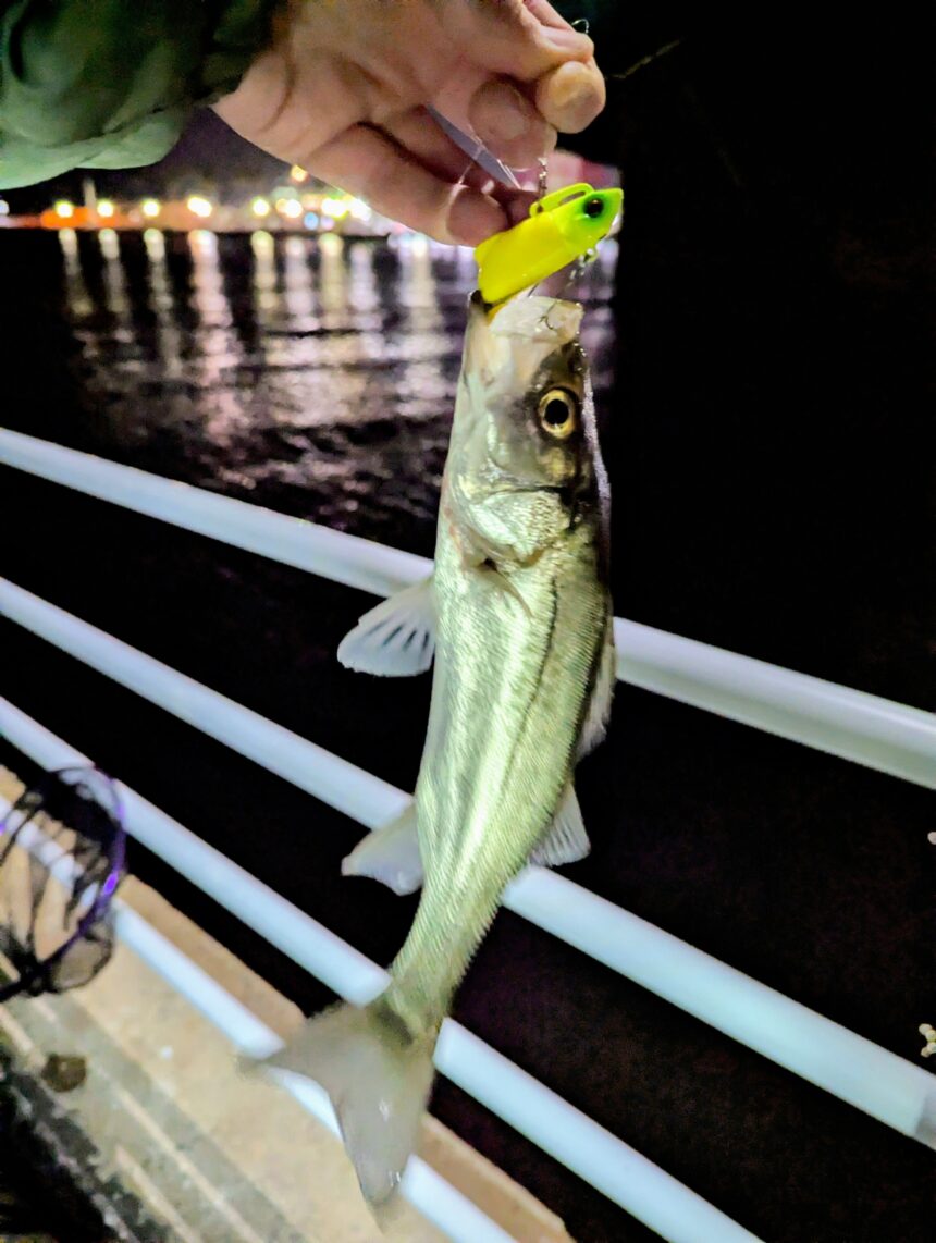 連日好調にスズキが釣れております。濁りの影響かチャート系のルアーに反応が良いとの事です。風が強いので岸壁沿いを狙うのも良いそうです。