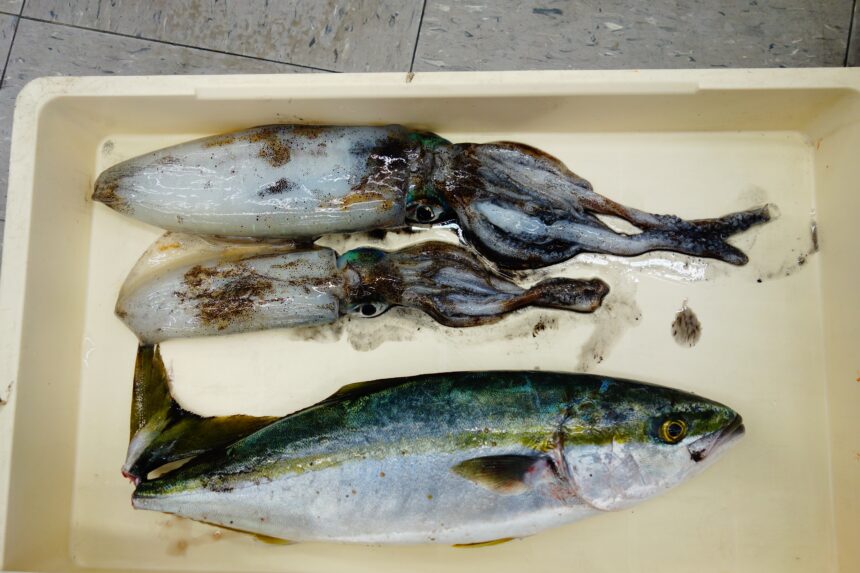 長崎南部にてアオリイカとヤズを釣り上げたそうです。