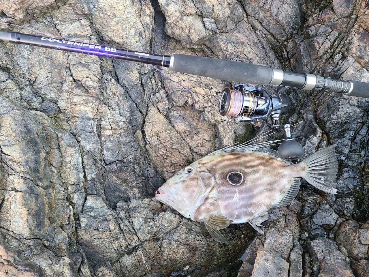 かけ上がり部を狙ってピンポイントでキャストしたところ、1発で喰ってきたそうです♪