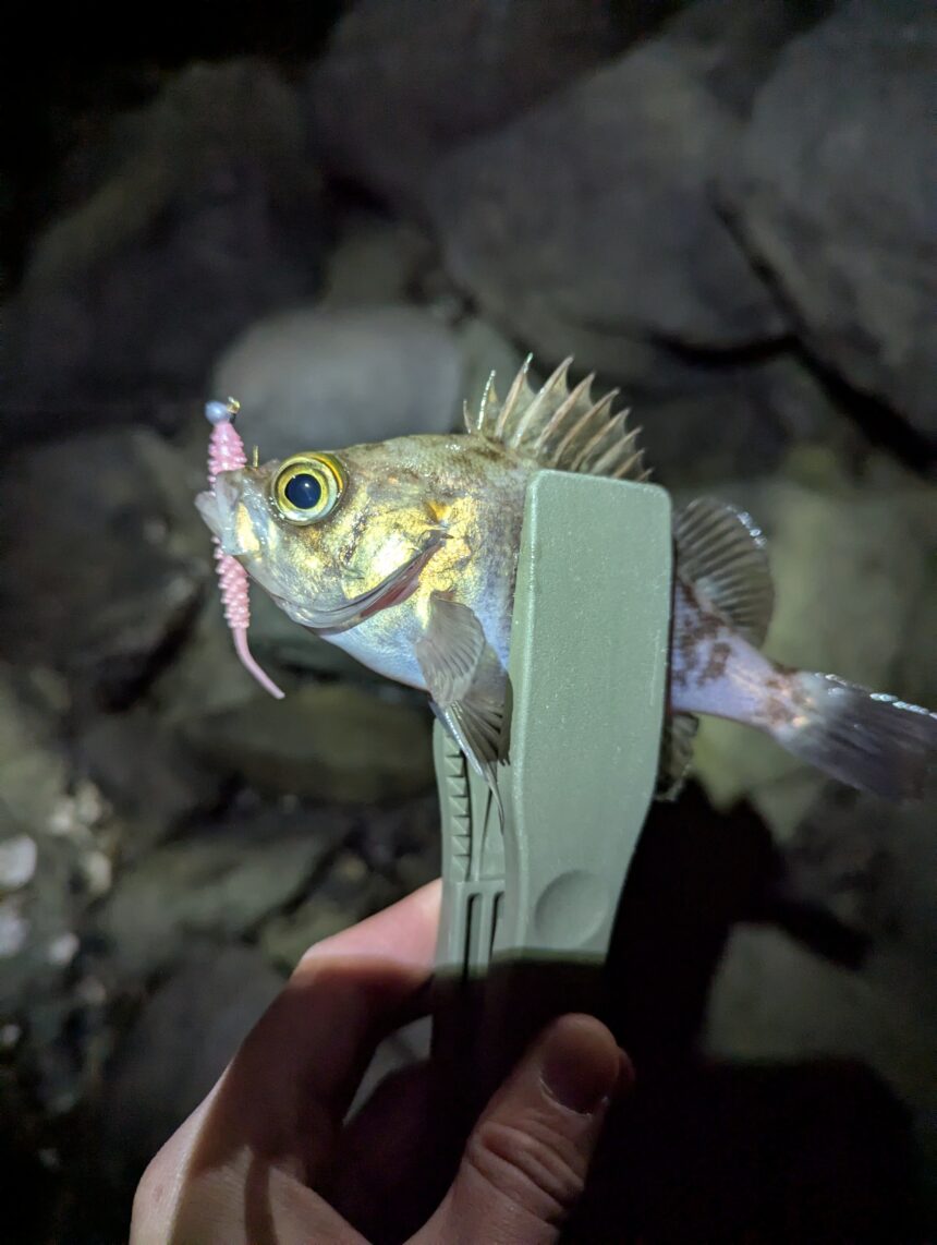 ライトゲームでメバル・アジ・カサゴが釣れております。メバルは表層でのアタリが多いそうです。ピンクグローのワームを表層付近ゆっくり巻くと釣れるそうです。