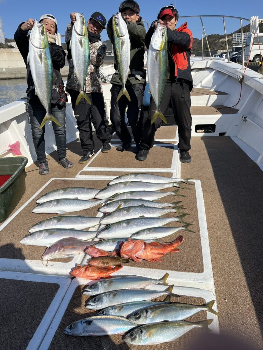 クルーズ様にお世話になり、佐賀関沖でジギング釣行へ。朝一は関サバ、アジ狙いでジギング開始!一瞬の時合でしたが40cmオーバーのアジ、サバがヒットし良いお土産に(^^♪その後はジギングで青物狙い!潮が流れ出すと100mラインで60~90㎝クラスの青物が連発ヒット!MAXは8.9kgでした!最後にタイラバでカサゴや真鯛がヒット!小潮でしたがアタリは多くて楽しい釣行でした!(^^)!ジギングは今がオススメです。