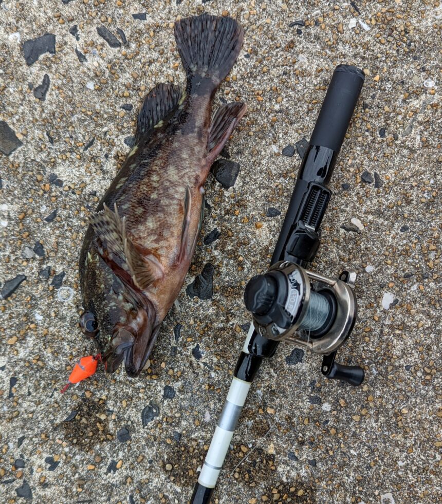 ブラクリを使用しテトラの隙間や岩の隙間を狙いカサゴが釣れております。エサはイカの切り身・ハラモ・青虫を使用し釣られたそうです。ハラモにアタリが多いとの事です。