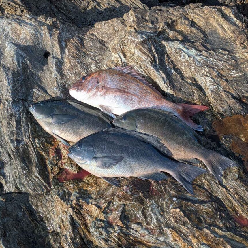潮が緩んだ時40㎝超えのクロ3枚とマダイが釣れました
