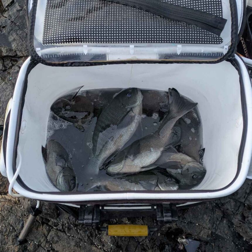 交わすと30㎝~35㎝程のクロが10匹程の釣果でした