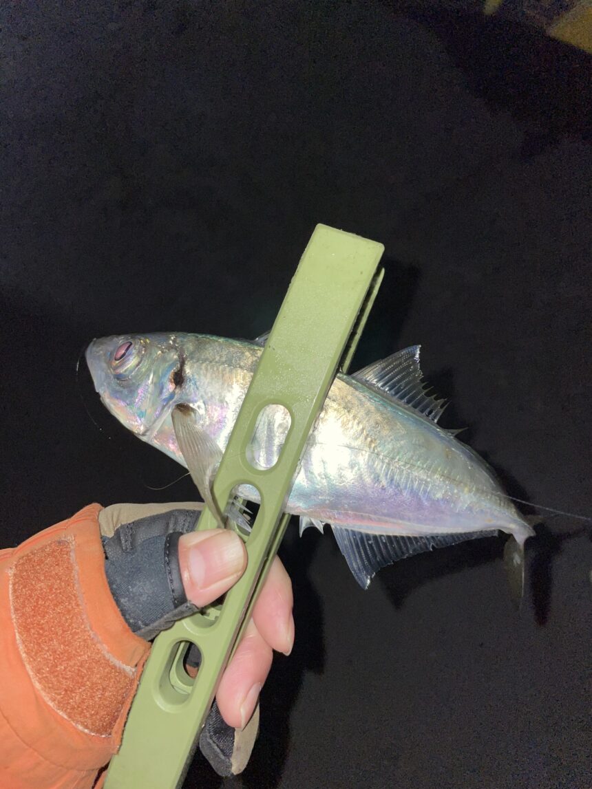 アジのサイズが小さくなってきたせいか、潮に流すゆっくりとした動きよりも、少し小刻みにワームを動かす方が、反応がよかったです(`・ω・´)ゞ