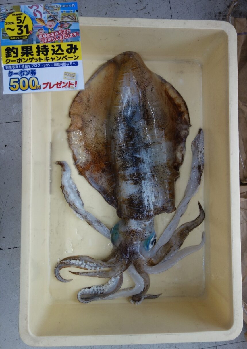 小江方面でのエギングで3kgのアオリイカが釣れたそうです。ケイムラ下地のエギを使用されたとのこと。