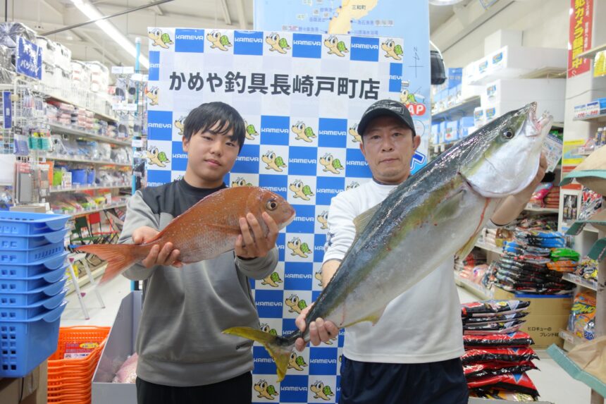 樺島沖にてタイラバを、マダイ45cm 1.15kgを筆頭にハタ複数、ボイルにキャスティングでヤズ7.6kgをゲット(*’▽’)!、お見事です。