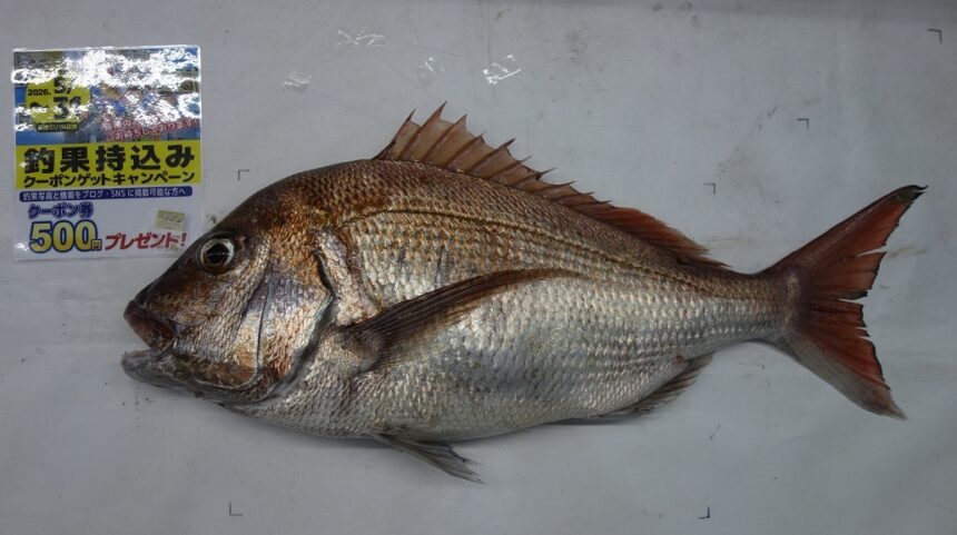 小江港でのサビキ釣りにマダイが掛かったそうです。71.3cm5.05kg。18時30分頃の釣果とのことです。