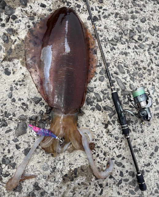 長崎南部のエギングにて2400g、2100gのアオリイカが釣れたそうです。